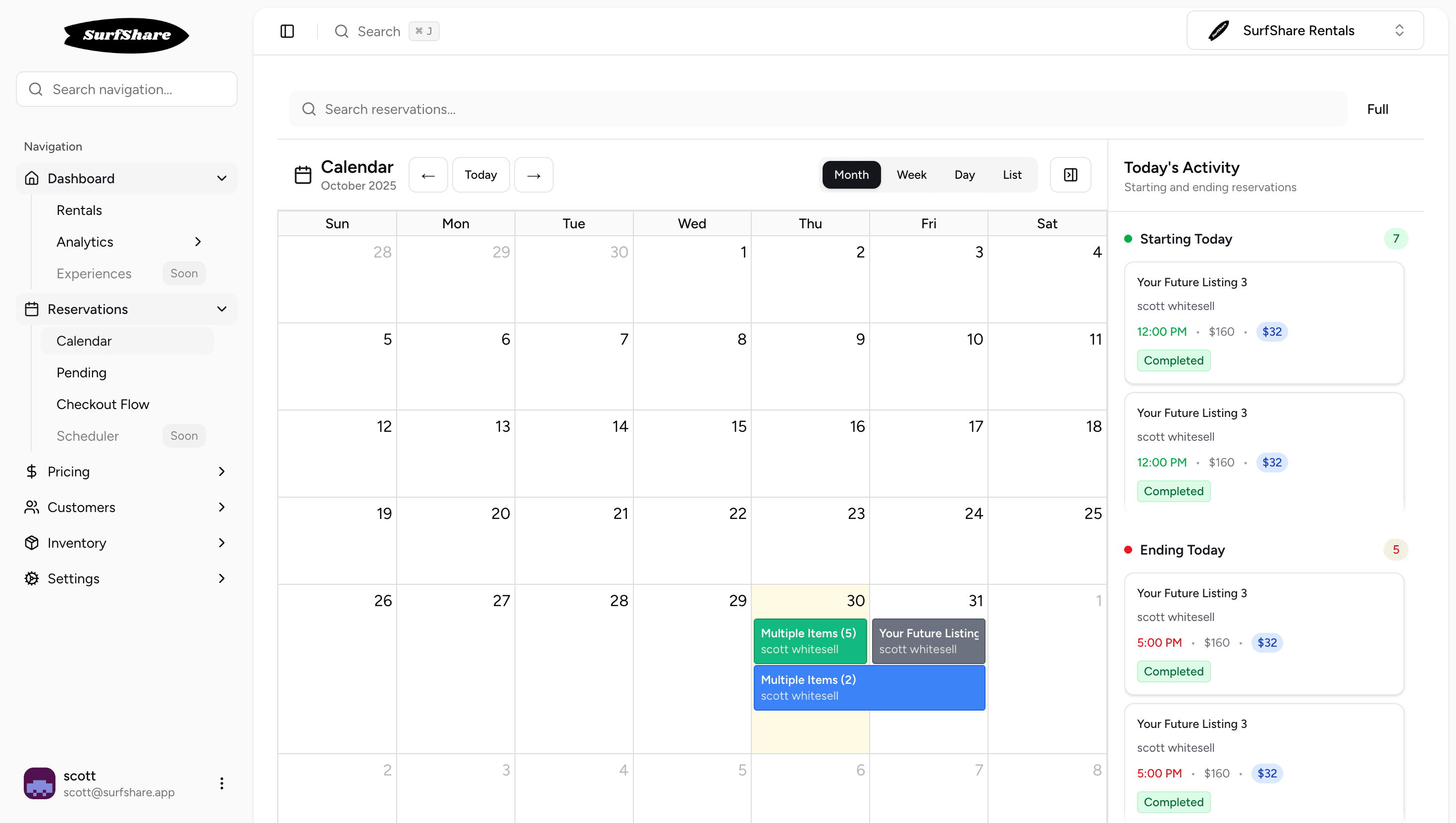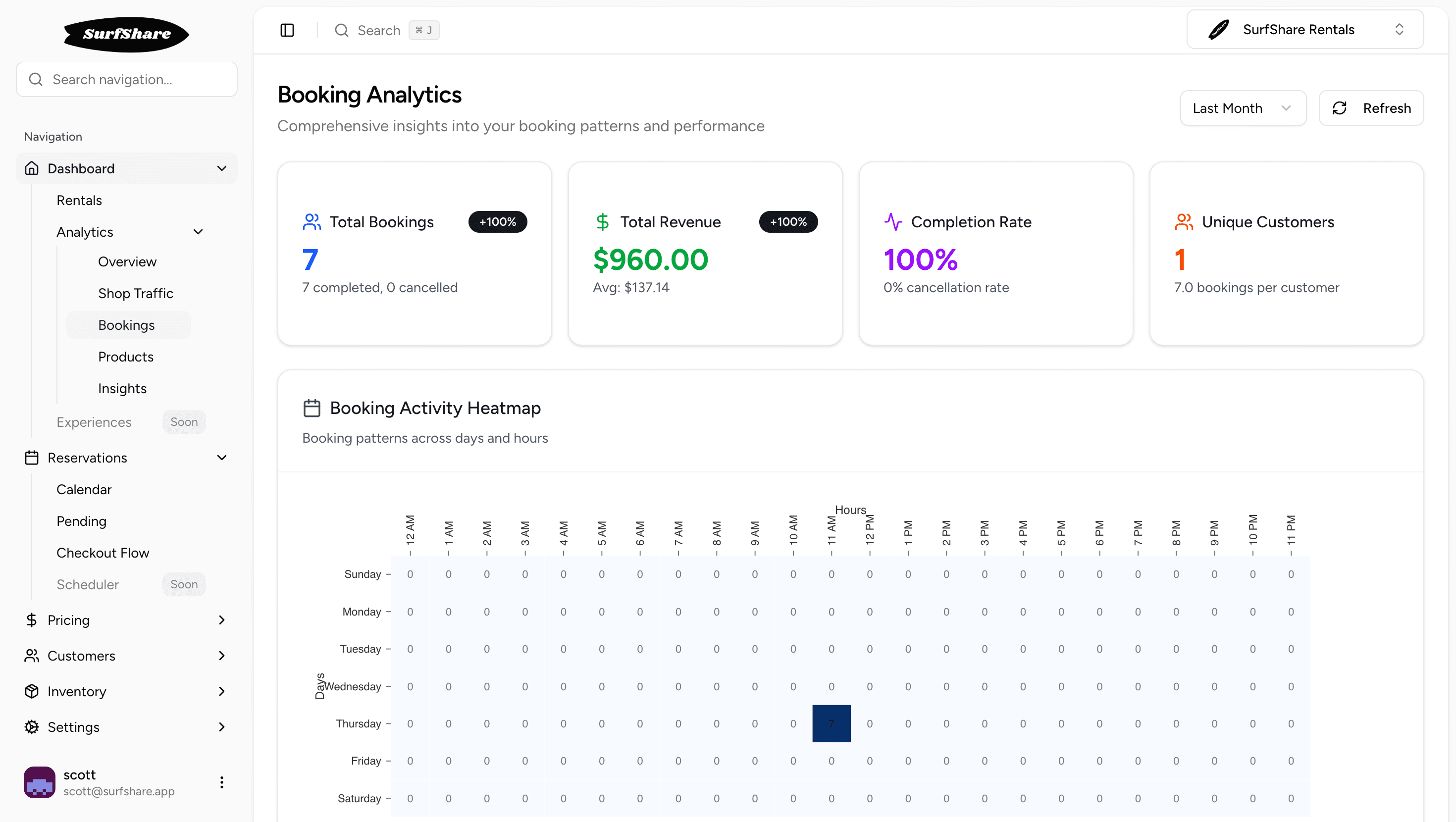 SurfShare tracks revenue, popular items, peak booking times, customer behavior, and more. Get insights into what's working so you can make data-driven decisions. Export reports or view dashboards - all your data is at your fingertips.